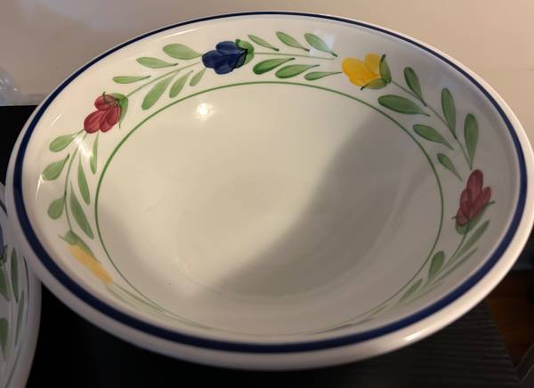 Bowl and platter set, excellent condition. Bowl measures 12” round x 4” deep. Platter measures 16” long x 11” wide x 1.5” deep. Pick up in Kew Gardens. Cash only.