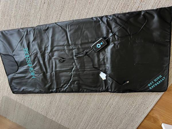 Includes: Sauna blanket, remote-control power cord, HigherDOSE towel, spray bottle, essential oil stick.