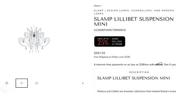 SLAMP LILLIBET SUSPENSION MINI CEILING CHANDELIER LIGHT FIXTURE