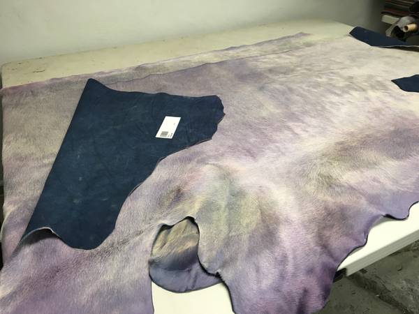 Genuine Large leather cowhide. Very clean and Beautiful soft touch feeling, first A class and top Quality. Thickness is about 5oz Imported and made in Italy. Color: Blue Jay Multi colors, Absolutely gorgeous looking and feeling leather.