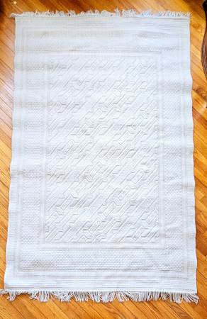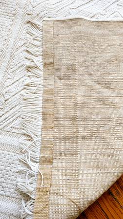 Easthampton Wilton Geometric Woven Area Rug with fringes 8''x5'' Made in Spain It’s crafted with 65% polyacrylic and 35% acrylic