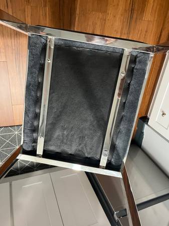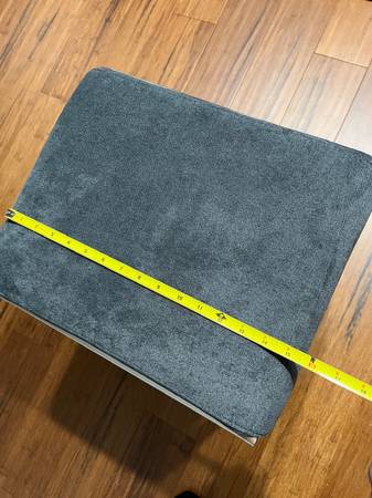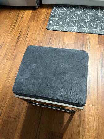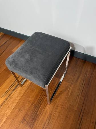 For sale in excellent condition a Grey Ottoman Seat Chair Fabric Stainless Steel - Chrome plated Unbranded Retails Price at Walmart $201 Measurements 13”x16”x18” Small and light (seats 1 person) Txt...