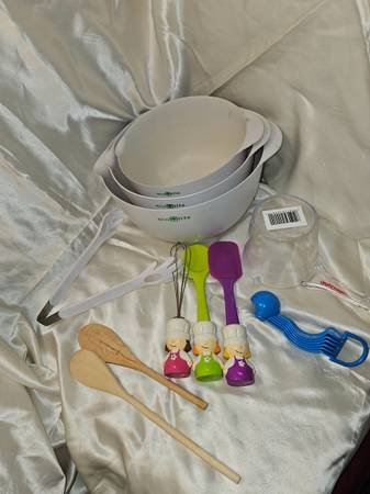 Mixing Bowls and Extras--$10 Purchased Used, Added some NEW items. Never used with my children. Just found them in my closet bagged up. Hoping a NEW family can use them. Flexible Pick Up Schedule NO...