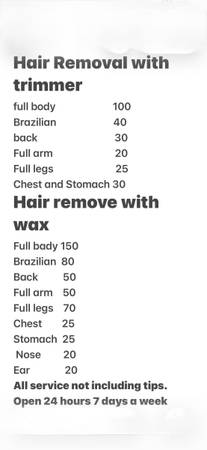 Prices vary depending on your needs. We use professional electric therapeutic clippers and high-quality disposable razors, all of which are sterilized and kept clean. I also offer Swedish body treatments to help mature men relax and unwind. I'm passionate about helping you achieve a healthier and happier life. To make it easier for you to schedule, please share your location. My studio is located in Flushing! I look forward to meeting you soon and serving you. Thank you!