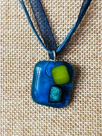 Artisan jewelry set I made this one of a kind blue fused glass pendant necklace. it’s part of a series. I am giving for free pair of blue stud earrings to go with it. The pendant rounded corners...