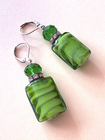 Brand new boutique earrings, vibrant green lamp work glass earrings. 1 1/2” ————— I cross list BC6
