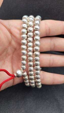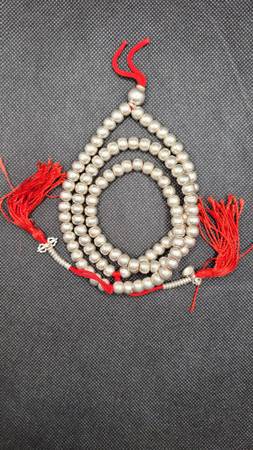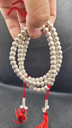 This beautiful sterling silver mala is handmade in Nepal. It has a very nice finishing. The beads are hollow inside. All of the beads are made individually by hand. It has 108 beads and comes with a sterling silver mala counter as shown in the picture. Can be used for yoga, meditation, prayers, and casual use as a necklace.
