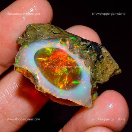 Bring a burst of color to your collection with this gorgeous 37-carat gem opal. With its stunning multi-color fire and impressive size (31 x 23 x 13 mm), this stone is a true find.