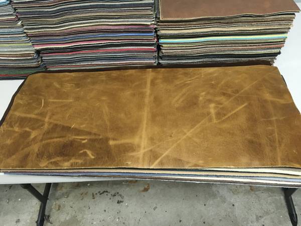 Leathers 10.25”x 24” 1.7square feet each. Many colors to choose from, leathers are imported from Italy. They are high quality leathers. The price is $12 each. Minimum to buy 3 pieces. You can come over and choose yourself OR you can buy it online BUT you will not going to be able to choose it, it will be sent to you Random colors.