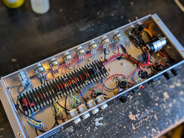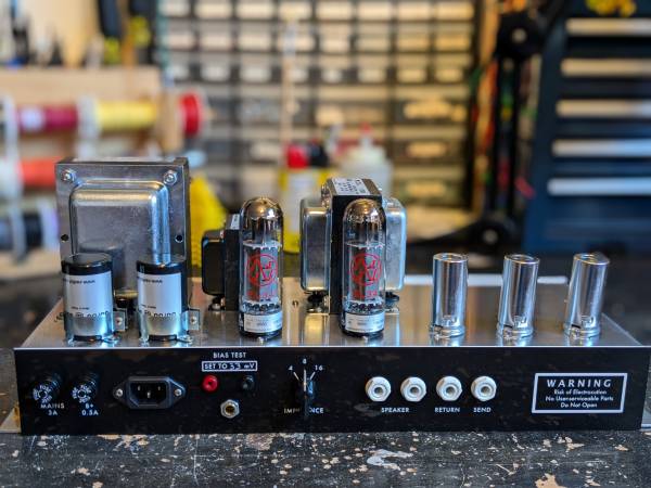 So we've got a 2204 here with a few of Tony's special sauce tweaks. That means a nicer low gain channel, dual master volumes for increased flexibility and controllability, a nice effects loop, and a smaller/lighter-weight headcase. It rules, and it sounds awesome. Super clean wiring and high-quality parts, and is in tip-top shape.