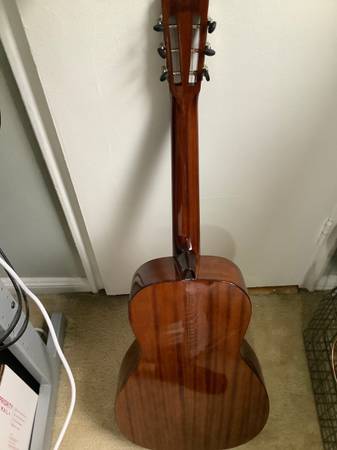 This parlor guitar's select tonewoods produce a rich, balanced acoustic voice with shimmering highs. The solid Sitka spruce top delivers crisp articulation and projection, while solid mahogany back and sides generate warmth and depth. Together they create resonance akin to guitars from the early 20th century. The hand-scalloped bracing enhances volume and sustain. Whether fingerpicking, strumming or flatpicking, you'll appreciate this guitar's musical versatility and vintage-inspired tone.