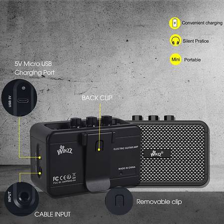 Charges with a USB cable, clean and distortion channels