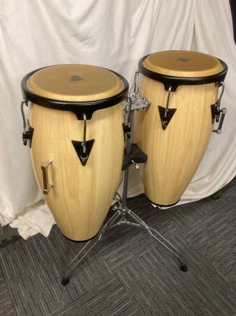 Up for sale are identical twin Lp congas . One is brand new the other is like new . They have 11 inch natural heads with black powder coated comfort curve rims. The set comes with added carrying handles ,a sturdy double stand and canvas travel cases., plus a tuning wrench. Its a cash only deal and they can be picked up in either Brooklyn or Queens at a public spot.