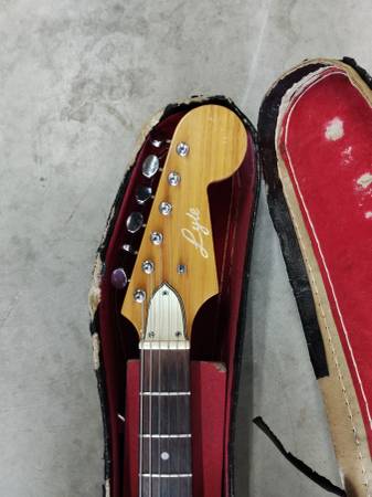 Lyle Electric Guitar -- 1970's MIJ -- virtually the same guitar as an Epiphone ET-270, but with another name on the headstock -- plays well -- minor cosmetic flaws including chip in neck pickup cover -- dig the trem -- has original chipboard case (case is rough but it functions) -- $500
