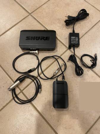 Fully functioning Shure BLX1 bodypack, BLX4 receiver, Lav mic, & extra xlr & 1/4" cords. I used this system to wireless transmit to a speaker. Band H10 Freq 542- 572 Mhz. Pick up in Middle...