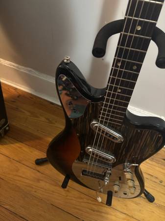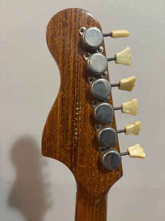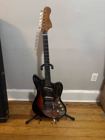Mid-60’s Framus in very good condition. Two single coil pickups. Tremolo bar and strange organ/pitch shift lever as well. The guitar had a full setup a few years ago and has incredible action. Plays better than any guitar I’ve owned. My style has changed and need something a little more beefy, so it’s not getting the attention it deserves. Make it yours today. Comes with original(?) or as close to as you could want velvet lined case.