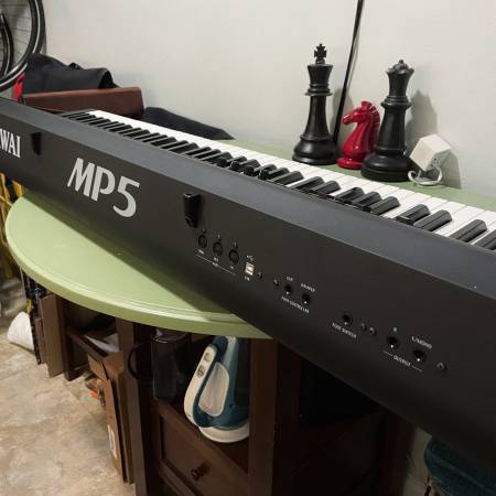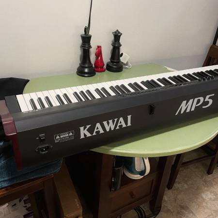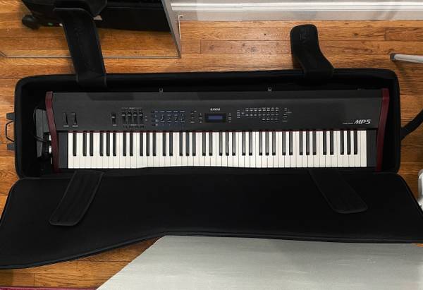 Kawai MP5 Stage Piano – $500 Excellent condition (small cosmetic ding on right panel). 88-key weighted hammer action with awesome dynamics and feel. Rich acoustic/electric piano tones, organs, and more. Feels and sounds like a grand. Built-in effects (reverb, chorus, EQ) plus MIDI/USB for studio or live use. Includes SKB padded wheeled case (~$200 value), stand, Kawai sustain pedal, and manual. Original owner, studio use only. Cash Sorry no trades.