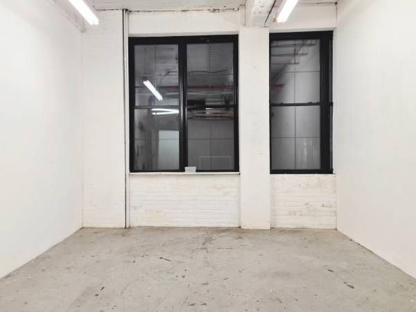 Bright, large window art studio/workspace available now. Private, locked entrance, 12' high ceiling, 24-hour access, and a freight elevator.