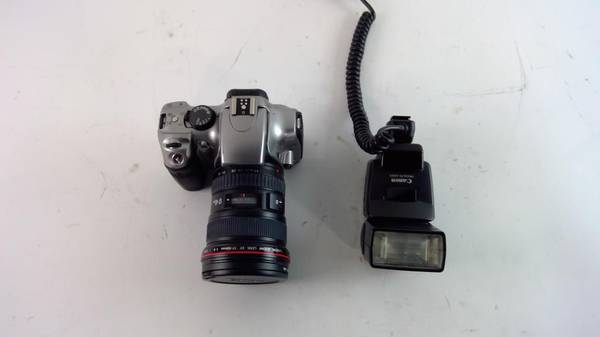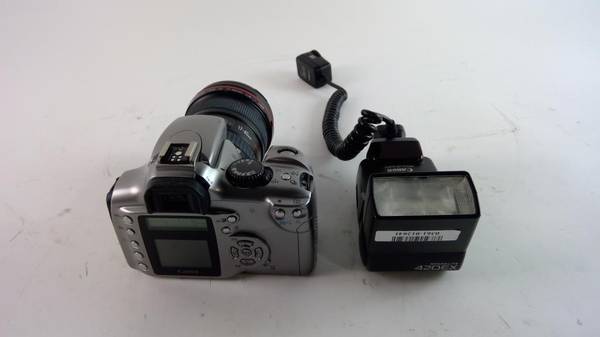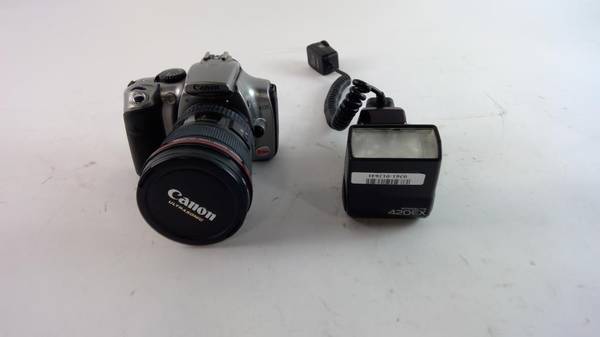 Canon EOS Digital Rebel Camera, (body) Model: Digital Rebel Megapixels 6.3 Memory Card Type: CF Battery: No included, no charger included. $60 Canon Zoom Lens EF 17-40mm 1:4 L USM, wide angle, $340...