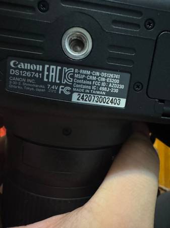 Canon DS126741. Like new condition, comes with carrying case, original strap, battery, and battery charger.