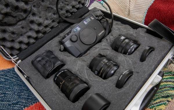 The Contax G2 is an advanced 35mm rangefinder. It has electronic autofocus and superb quality Carl Zeiss optics. It also offers auto exposure, auto loading, advance and rewind, and TTL metering for both flash and ambient light. This stunning all black Limited Edition kit is a complete set with the 28mm f/2.8 Biogon, the 45mm f/2 Planar and 90mm f/2/8 Sonnar lenses and fully working TLA200 flash unit. All lenses have always had filters attached in my ownership and have their matching GG-1,2 and 3 metal hoods. It has been little used by myself but when I have shot with it you really feel connected to the G2. I always felt I was using something very special and inspirational and excellent results usually followed. The optics of the G2 are generally considered equal or superior to Leica lenses.