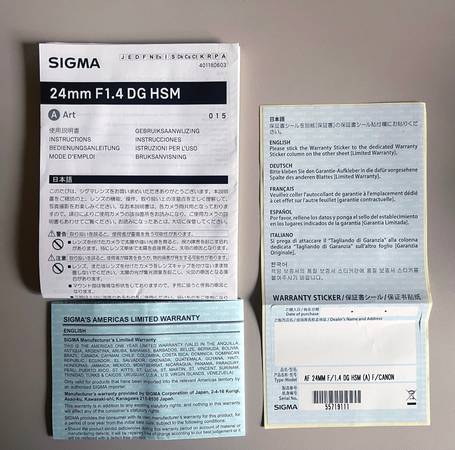 This is a Sigma 24mm f/1.4 DG HSM Art Lens for Canon EF. Like new condition. It's essentially never been used, other than briefly being tested inside when first purchased. There's also a B+W UV filter. Original box and paperwork, also case for the B+W UV (10) filter. I'm in Flushing, but can meet somewhere with reason.