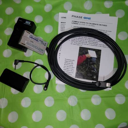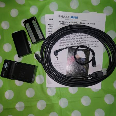 Comes with Phase one metal cover, pc to pc sync cable, firewire cable, 2 batteries and a charger.