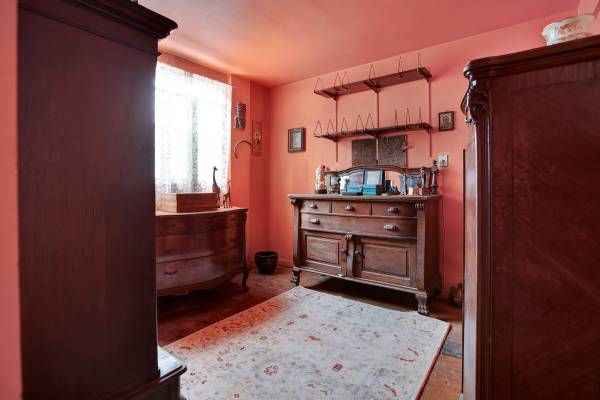 The apartment building is situated on a street with ample parking as the other side of the street does not have any other buildings, allowing for plenty of street parking spaces.
