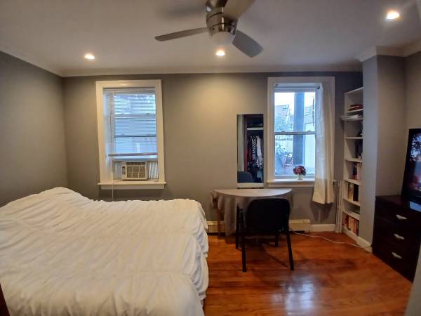 A fully furnished, sunny huge main bedroom of a beautiful, renovated apartment, clarity,