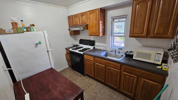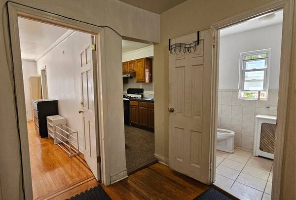 Shared bathroom/kitchen/common space with additional storage closet. Hardwood floors. This is a 1st floor walk-up with 3 bedrooms total