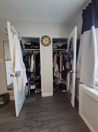 The room is very sunny with a large south facing double window, and comes with 2 large closets with top shelving.