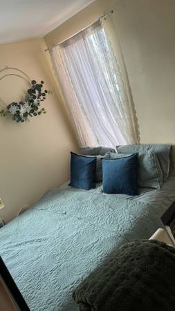 Furnished room for rent to share with a girl. Includes kitchen access and shared bathroom. The area is private. There are stores, also supermarkets nearby. With laundry facilities in the building....
