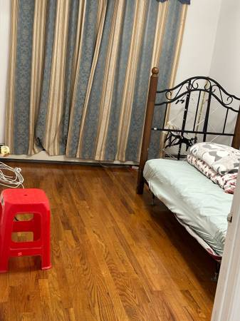 The apartment with 2 bedrooms with a living room, the kitchen with gas stoves. One bath room. One of bedroom occupied by a mom with a 7 years old child. The another bedroom being rent. Requires tenant: no smoking, no drinking alcohol, no pet, create checking lady.