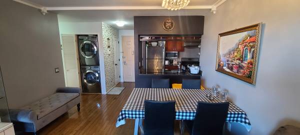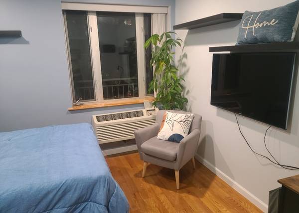Apt has a laundry and dishwasher, balcony. All utilities are included wifi in the rent. Room is large, tv inside.
