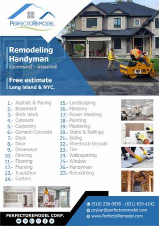 license info:LICENSED - INSURED - residential and commercial - handyman or remodeling work