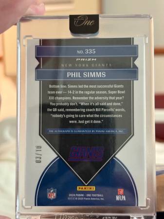 100 OBO Panini one Phil simms once in a franchise auto gold /10