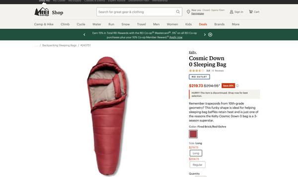 Kelty Cosmic Down 0 Sleeping Bag