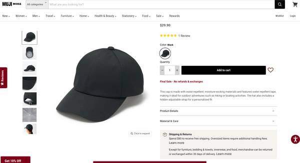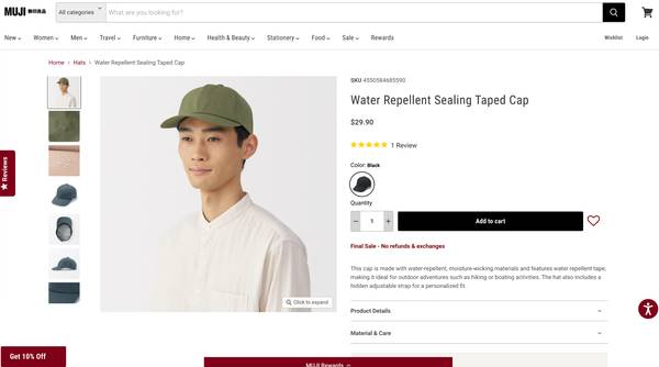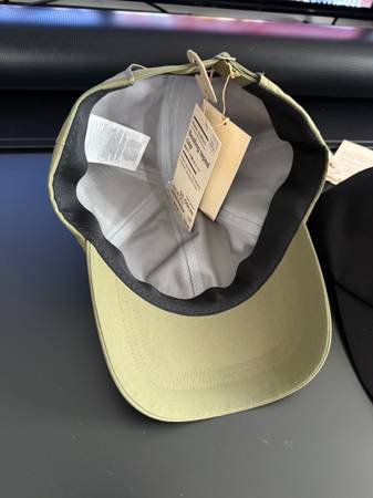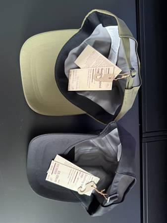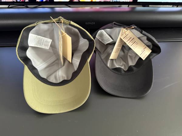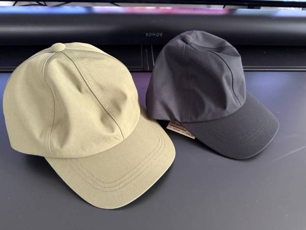 Two (2) MUJI Water Repellent Sealing Taped Caps. Black and Green. New with tags.