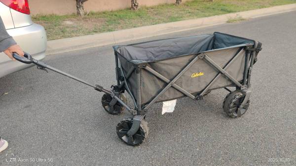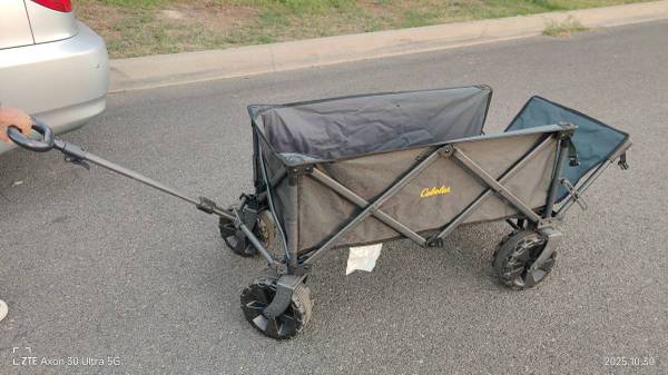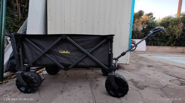 https://www.cabelas.com/shop/en/cabelas-all-terrain-wagon Genuine Cabela's , please see the above link. Almost new Max. Wt. Cap.: 225 lbs. Use it when camping, for beach stuff, for shopping or for...