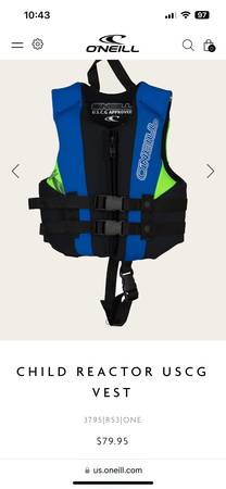 $45 OBO Keep your kids safe and put them into gear of the same high quality as what you demand for yourself. USCG Approved Type III Minimal Bulk Design Quick-Release Dual Safety Buckles Mesh For...