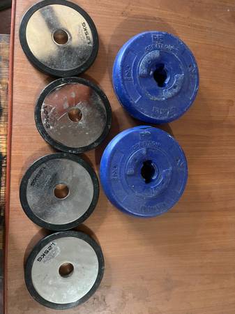 4 Weight Plates 1-Inch center- hole | 5 lb Size : $15 I also have the other 4 old cast iron wright plates: $15 (1.) Power Press complete push-up Training System: $20 (2.) 4 Weight Plates 1-Inch...