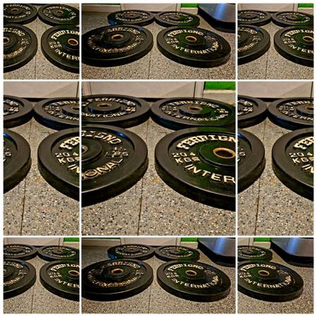 CLASSIC FERRIGNO SOLID RUBBER 45 POUND BUMPER PLATE SET - 2" HOLE TO FIT ALL OLYMPIC BARS- SOLID RUBBER -45Omm DIAMETER - SUPER THIN AT ONLY 1.5" THICK- THIS IS COMPETITION LEVEL THICKNESS- $99 PER PAIR - 3 PAIRS AVAILABLE