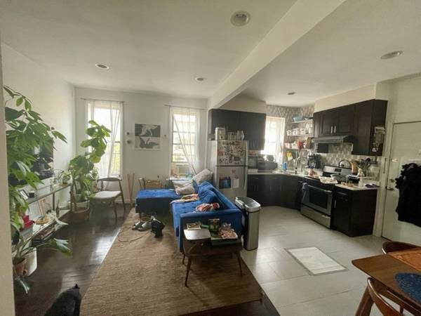 We have lived with another friend before who can provide a good recommendation for living with us, we are very respectful of our energy in the space and keep our relationship matters private. Apt is on the third floor and located conveniently 3 min off the Forest M, or 10 min from the Myrtle Wyckoff L, next to Rosemary’s Playground, laundry less than a block away, a library, grocery stores and lots of cute stuff to do in the neighborhood. Apartment has a small dishwasher, and fully furnished (minus bedroom.) Room comfortably fits a Queen sized bed and other small furniture. Sorry we are a one pet household for now with few exceptions! Excited to learn more about you!