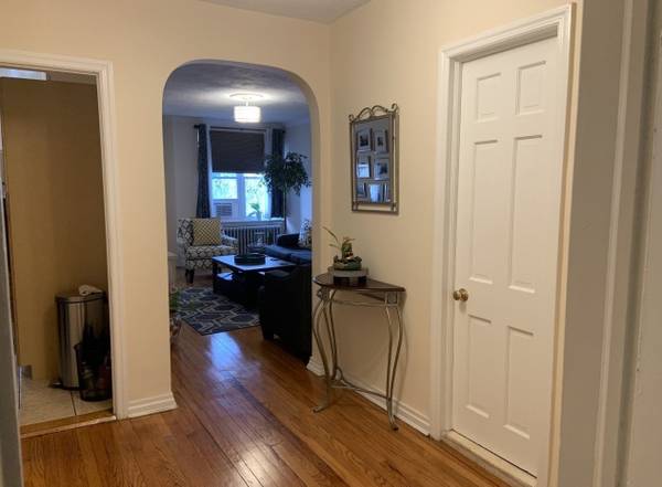 Bright, clean, freshly updated apartment on a quiet Elmhurst block. This roomy second-floor unit feels like a home: two large bedrooms, an eat-in kitchen that fits a big table, and a generous living room. Hardwood floors throughout and a welcoming foyer add to the charm.