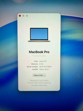 MacBook Pro 13 2020/Apple M1/8GB RAM/512GB SSD/Fully Functional/USB-C Charger/Like New/A2338