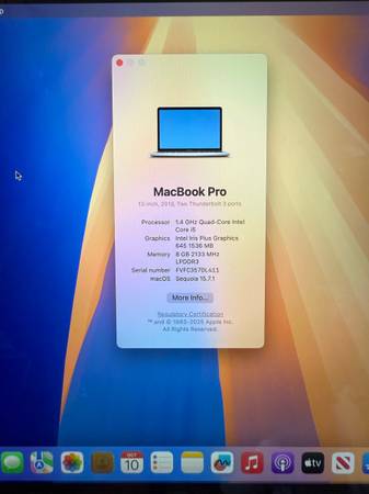 MacBook Pro 13” 2019/8GB RAM/128GB SSD/Good battery/Fully Functional/USB-C charger