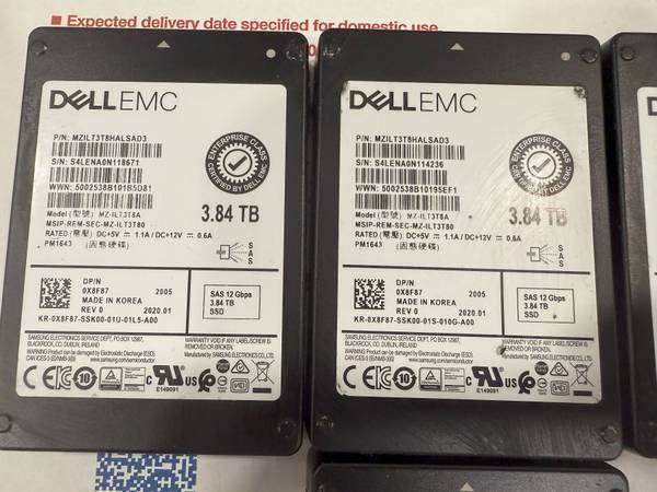 Dell EMC PowerEdge 3.84TB Enterprise SAS SSDs 12GBPs $240 for each SSDs Health is 100% and Performance is 100% Also have HPE HP 1.92TB SATA SSDs We can customize all systems and provide additional...