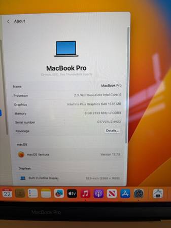 Macbook pro A1708 13" in good condition 100% working great , everything already wipe out in the computer LIKE NEW Condition, iCloud off , $285 please call : show contact info