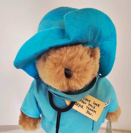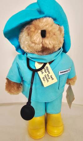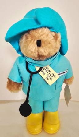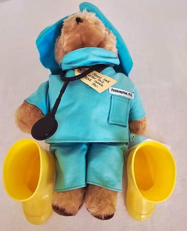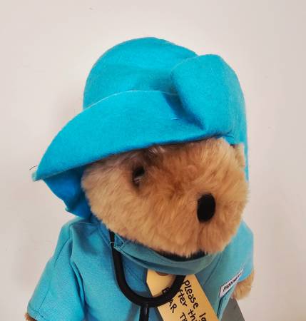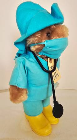 This charming Bear Toy comes with his original accessories: boots, can be removed, scrubs with mask, stethoscope and a hat.