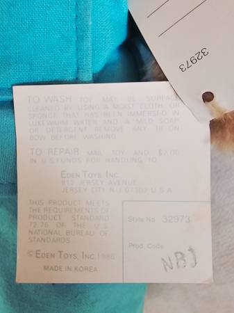 Rare Paddington Bear Plush toy made by Eden toys in 1991.